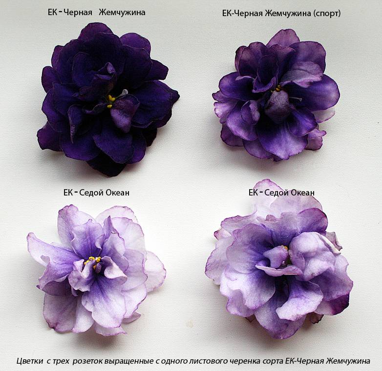Reproduction of pearl violets by seeds is also possible. However, this method rejects up to 95% of plants that do not inherit varietal characteristics from fialka EK Black Pearl. This is mainly done by breeders who check the preservation of specific characteristics in 3 generations and only then recognize the varietal violet. At home, this is too time-consuming process, which causes difficulties even when collecting seeds suitable for growing.