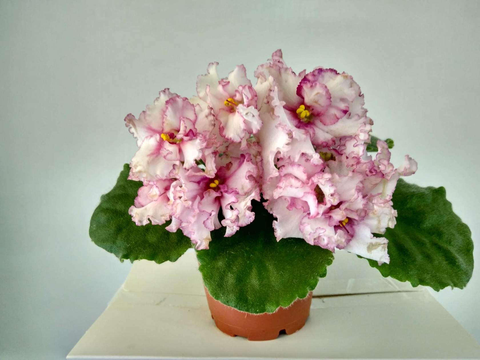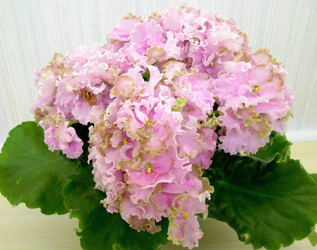 The most famous varieties have similar shapes and different colors in the inflorescences. The cultivar LE-Zlato Scythians, bred in 2015, given as an example, is the owner of large double flowers of a white-yellow shade with corrugated petals, "outlined" with a pale pink border. Unlike the given variety, the AV-Gold of the Scythians violet, bred a year earlier, has a different color. A flower with white-yellow simple, semi-double petals-stars, which have bright pink edges. The rosette is represented by leaves of medium size, saturated green tone with a wavy toothed shape.
