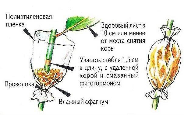 To root the ficus with air layers, a small area of up to 6 cm must be cleaned on the lower branch. Apply activated carbon. Wrap the processed branch with foil. Place soil or moss inside and tie with rope. You should get a small keg. Leave a hole on top.Attach the shoot to a stick and stick it into the pot to the flower. Water the plant through the top hole. A month later, the first roots appear on the handle. Then it is cut at an angle and planted in a separate pot.