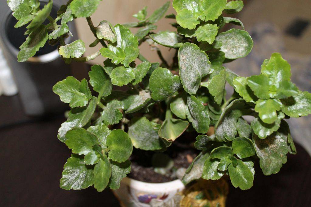 Late blight rot manifests itself in the form of a brown plaque that covers the stems. Affects plant development and results in stunted growth. It is necessary to set the optimal temperature in the room and treat the Kalanchoe with a fungicide.