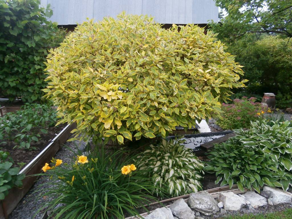 Derain belongs to the Cornel family. The height of the shrubs varies from 20 centimeters to 3 meters. Derain is also represented by trees growing up to 7-9 meters. The leaf plates are green or variegated. Flowering occurs in late spring, fruits are formed by autumn.