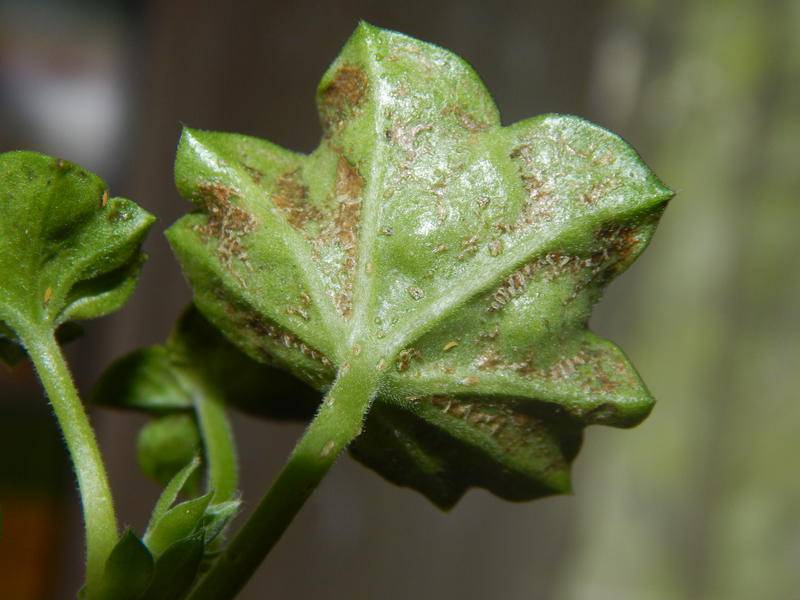 First, you need to cut off all damaged parts of the plant. They should look curled up. Then you need to rinse the geraniums under a warm shower and cover the plant for several days with a plastic bag.