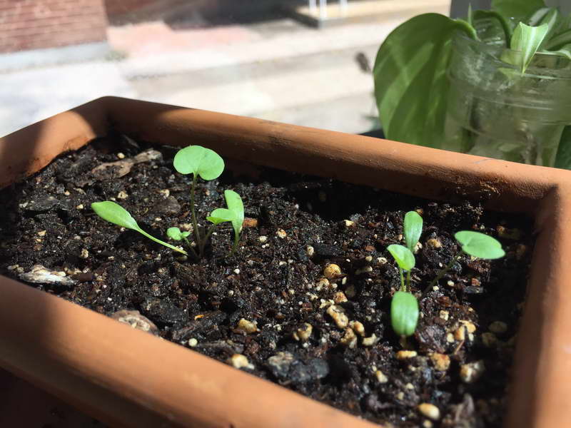 The seeds are spread evenly over the surface, after which they are moistened with a spray bottle and covered with polyethylene. The best place for germination is a bright and warm room.