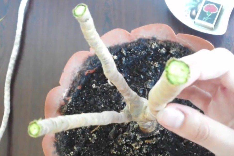 - the barrel broke. It doesn't matter. It is necessary to trim the breakage point with a sharp pruner in order to get a cut strictly perpendicular to the trunk. With melted candle wax or garden varnish, the paraffin wax is sealed to prevent it from drying out along with the underlying healthy tissue. Watering is reduced by 2-3 times. A month later, buds should wake up near the break, of which 2 to 5 new shoots will grow on the trunk within a year. The broken off crown can be rooted in water or immediately in the ground;