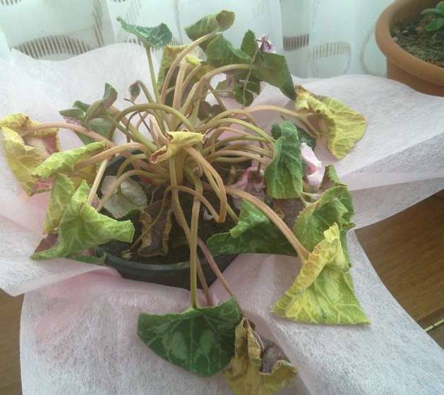 Regardless of the place of its growth, the reasons why the leaves of cyclamen turn yellow are the same: