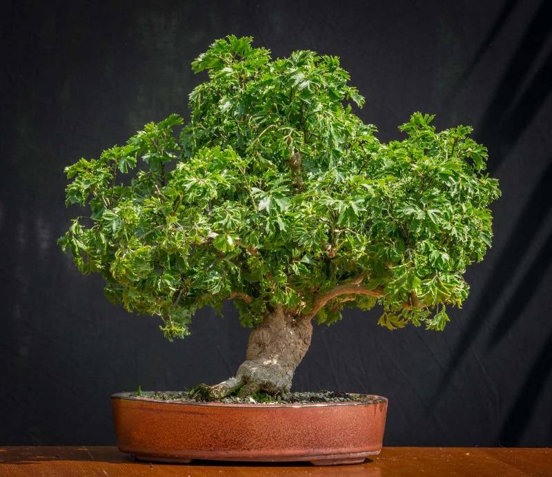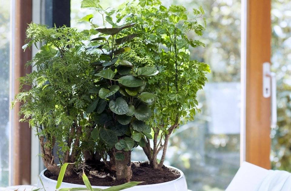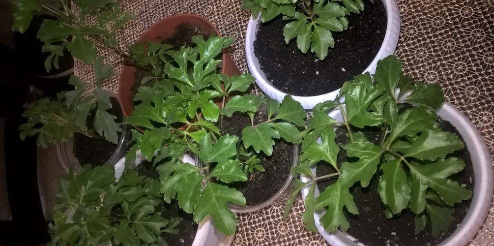 This shrub is distinguished by a thickened trunk with a bend. Young branches stand upright. Often taken to create polisias bonsai. First, this plant develops whole leaves of a rounded shape. Subsequently, they turn into three-bladed.
