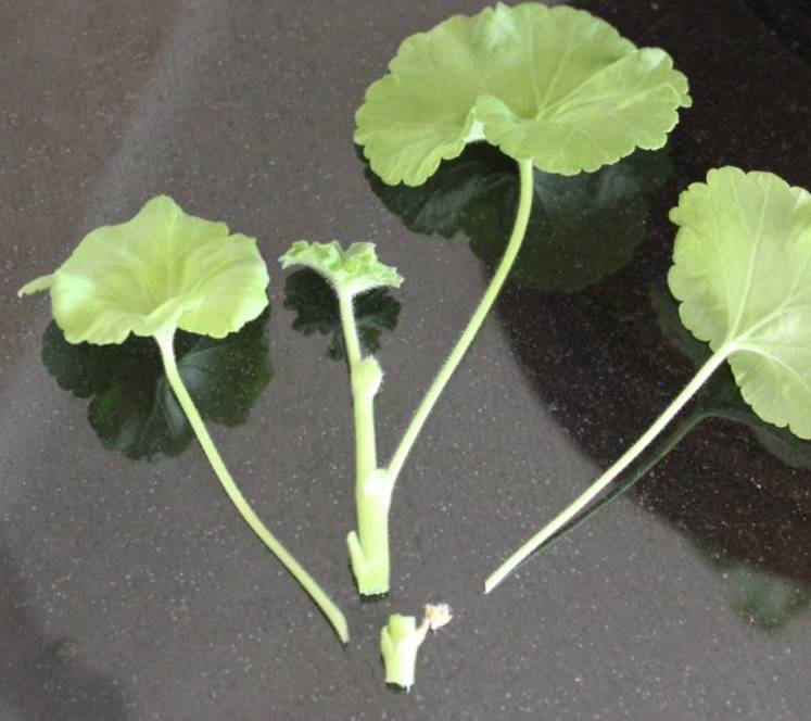 Pelargonium has no nodes inside the leaves that can form roots. Therefore, a leaf placed in water will simply rot. You can get an escape if the leaf is cut from the mother bush together with the petiole and part of the stem. The resulting seedling should consist of at least two nodes, one of which will go to the formation of roots, and the second - the future inflorescence. The soil mixture is the same as for cuttings, poured onto the drainage layer in a glass and well moistened, and then the seedling is buried. The survival rate of such an shoot is much lower than cuttings.