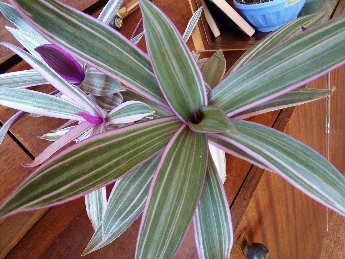 Rheo is a houseplant, a herbaceous shrub 30-45 cm high. Its leaves are long xiphoid with a two-color color. The upper part of the plates is green, the lower one is red or purple. There are variegated varieties with longitudinal white or pink stripes.
