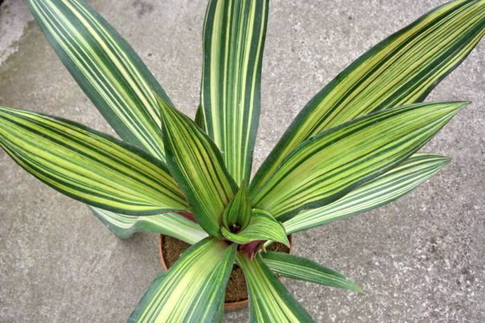 - Vitatta. Below the leaves are colored purple, on top - alternating green and yellow stripes.