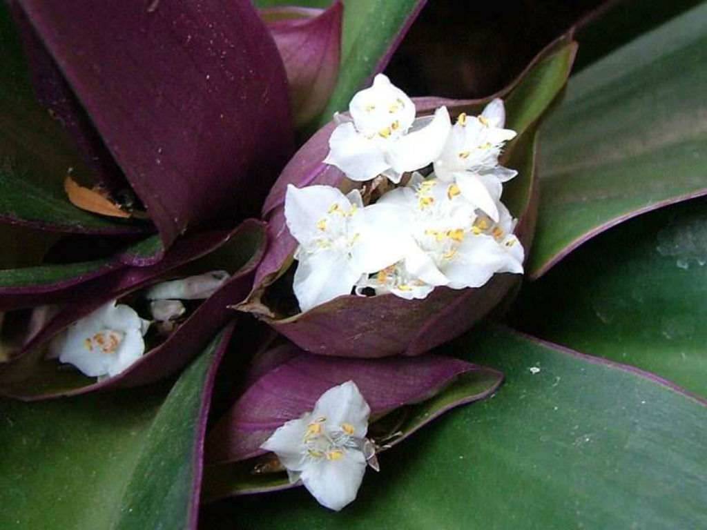 The rheo plant blooms most intensively in spring and summer. In the axils of the leaves, boats are formed in which white flowers. When the buds begin to dry out, they must be torn off along with the pedicels.