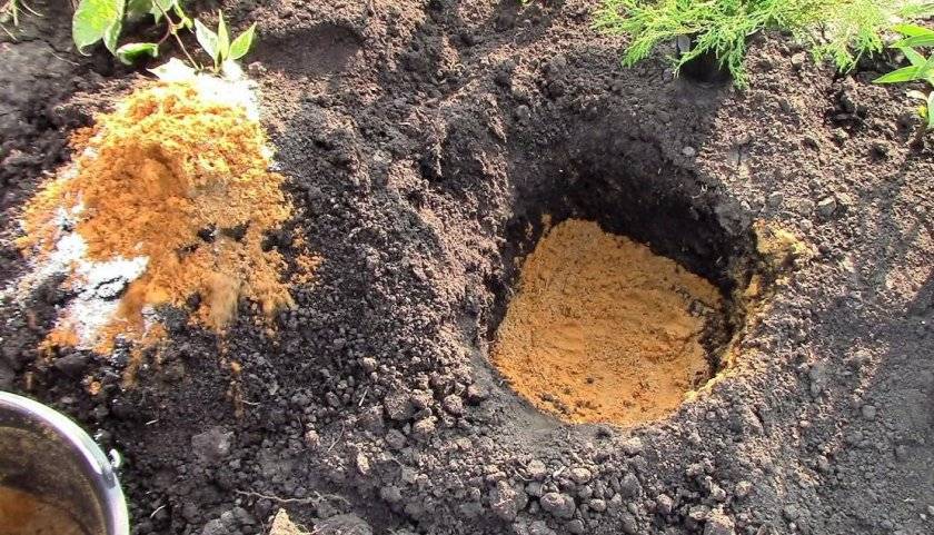 - In the center of the hole, a mound of nutrient soil is created, over which the roots are neatly distributed.