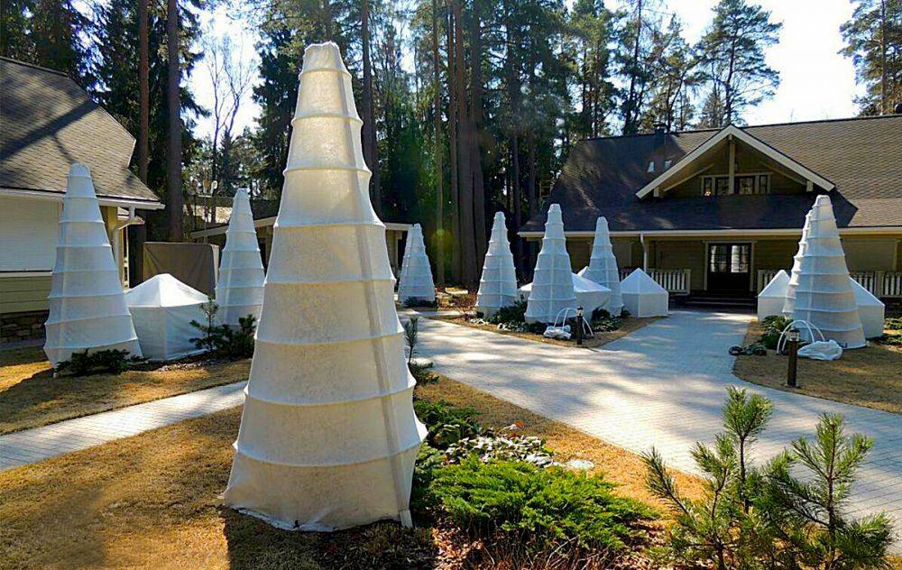 In addition to covering the bottom of the bush with spruce branches, you will need a shelter with a special garden breathing material. In the spring, it is worth removing it gradually so that harsh sunlight does not have a detrimental effect on the plant, which is accustomed to dusk during the winter.