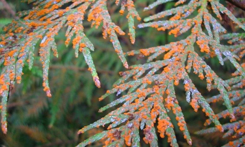 - rust most often occurs in early spring. As a result, the needles begin to darken and fall off. Special fungicides containing copper will help;
