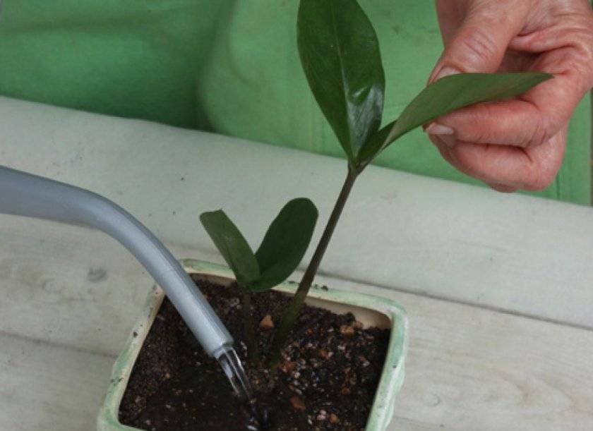 One of the most important factors in the normal development of zamiokulkas is the frequency of its watering. The number of procedures should be determined individually for each plant. The main reference point is the state of the topsoil. In spring and summer, the earth can be allowed to dry out a little. If the soil has already dried up, while there are still traces of moisture, it is recommended to wait another 1 day, and then water it. In the cold season, you need to wait until it dries completely and only then water.For the procedure, soft and warm water at room temperature is best.