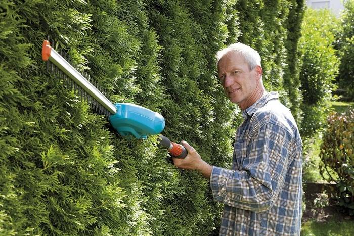 For young plants, it is best to use regular garden shears. For large thujas that form an array of hedges, an electric tool is suitable, mechanical scissors are difficult to cope with here.