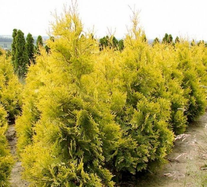 Frost-resistant variety, easy to care for. A living fence made of thuja Yellow Ribbon looks very decorative.