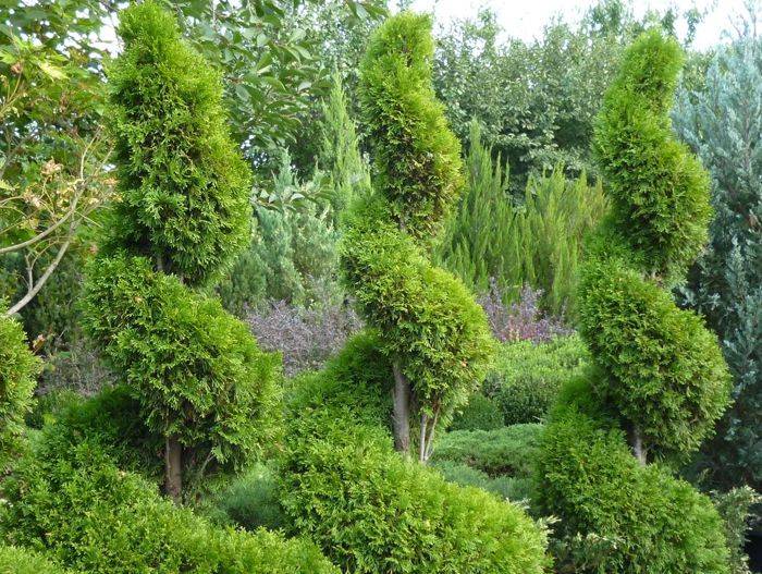 The formation of thuja Smaragd is possible not only in a classic cone, but also in more interesting ones, for example, a spiral.