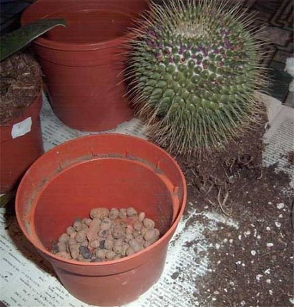 Florists also often ask do you need drainage for cacti. The answer is yes, because it is thanks to him that there will be no stagnation of water in the pot, which will exclude decay of the roots. Drainage can contain crushed stone, expanded clay, coal, eggshells, wine cork.