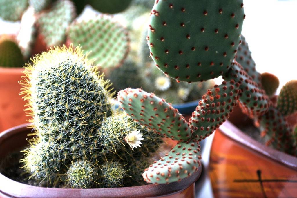East or north window sills are the optimal solution for growing cacti, as even the most sun-resistant plants get burned, as a result of which they form black or red spots.