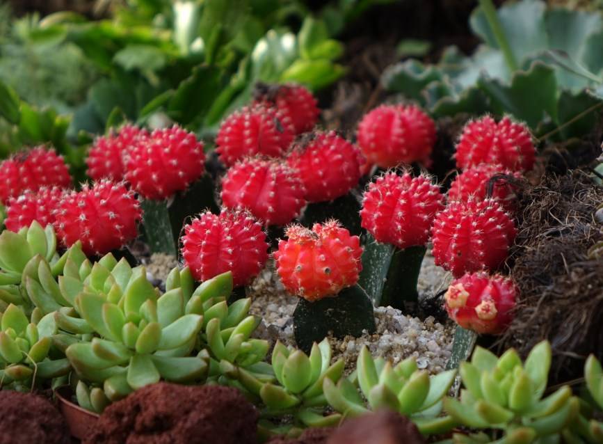 The culture can also have a red color, but only on top. An example of such a plant is Mikhanovich's hymnocalycium. It was this that laid the foundation for the creation of colored cacti.