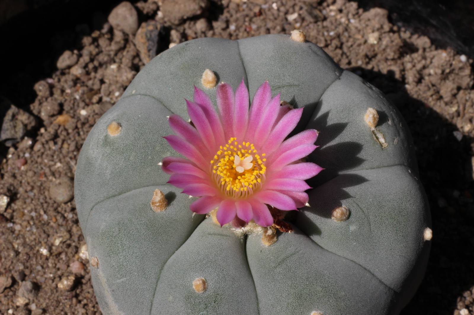 The native land of the peyote cactus Lophophora Williams is considered to be the northern part of Mexico, Arizona. The decorative qualities of the plant are inconspicuous: it is a small green mass of a flattened spherical shape. During flowering, white and pink flowers are formed.