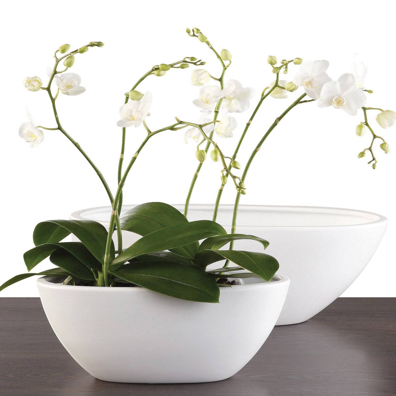 Unlike plastic, ceramic and clay containers for orchids look very prestigious and highlight the beauty of the flower. Their weight will allow you to get rid of the risk of overturning the pot with the plant.