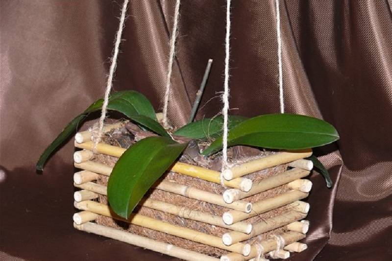 The temperature in the container and outside must be the same. To do this, they take plastic pots (plastic does not store heat), cut holes in them from the bottom and slots on the side so that the air has unhindered access to the orchid roots.