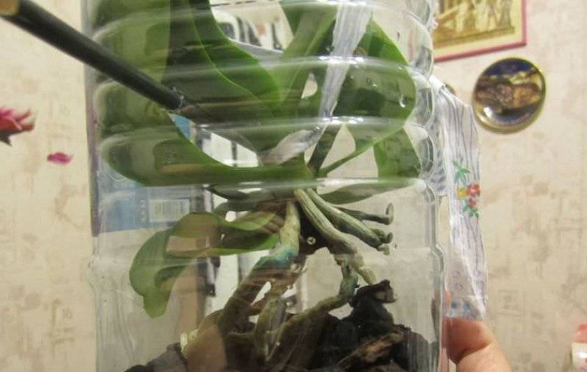 It is very difficult for an orchid to grow roots with this method. Constant monitoring of her condition is necessary. The flower can rot, and if it survives, it can be difficult to root in the substrate.