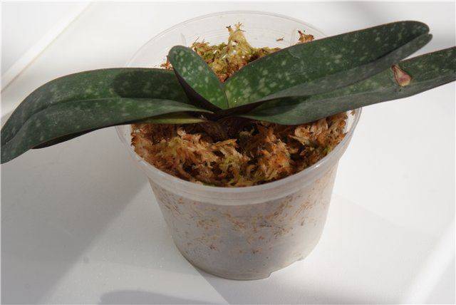 Place the diseased phalaenopsis so that the base is in the moss. The greenhouse should be covered and left in a bright place, excluding direct sunlight. It will be possible to remove the plant from the greenhouse and plant it in a pot when the fresh root reaches 5 cm.