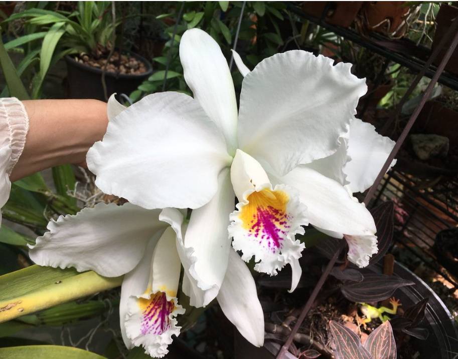 - species Cattleya Walkeriana - varieties of Valkerian orchids differ in the size of the pseudobulbs and the size and color of the petals. Variety Alba is a white cattleya with snow-white inflorescences, Сoncolor (rosea) - pink, Werkhauserii - white tepals and a bluish lip;