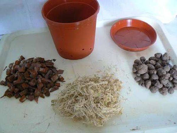 You can make a substrate for indoor orchids with your own hands and in a volumetric ratio. For example, pine bark - half the volume, 10% sphagnum, 5% coal and an equal amount of expanded polystyrene and expanded clay (15-20% each).