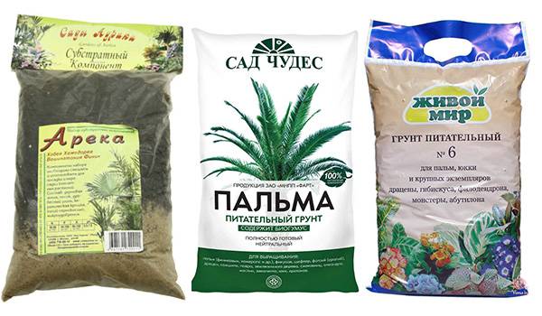 You can buy ready-made soil for palm trees or make a mixture yourself. For this, 1 part of humus, 1 part of sand (coarse-grained), 2 parts of leafy soil and 4 parts of soddy soil are taken.