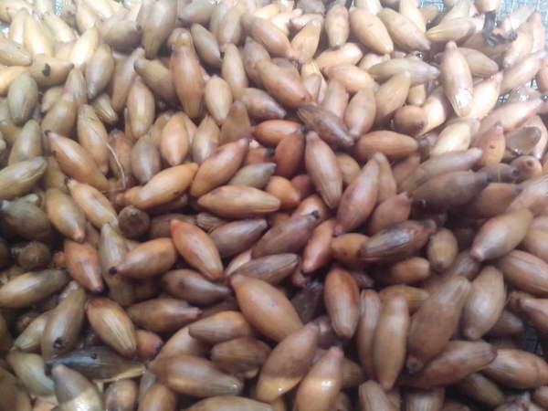 The subspecies areca Katehau, or betel palm, is adapted to the conditions of a house or apartment. In the wild, it can grow up to 20 m. Fruits of red-orange color have a nut in the middle. The flowers are light brown.