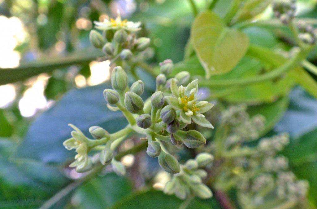 The home avocado tree blooms with dim small flowers. The first flowers appear 5-6 years after planting. An avocado grown at home is extremely reluctant to bloom. The buds form medium-sized and dim inflorescences of 7-10 flowers. They do not give off scent and look unassuming.