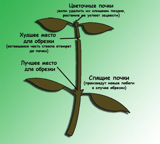 In order for the avocado at home to give more lateral branches, young shoots stretching upwards must be pinched several times. The first pinching should be done when the tree reaches 250 mm in height. The top two pairs of leaves are pruned. After that, pinch when the lateral branches reach 120 mm. There are also 3 and 4 nips.