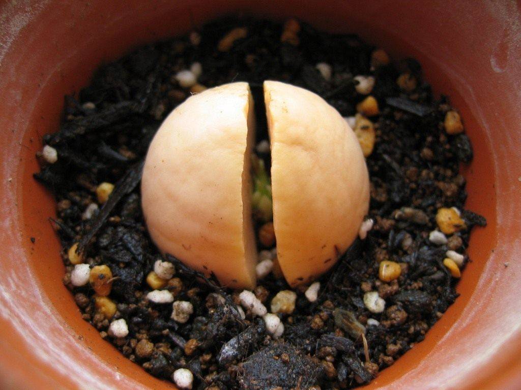 If the seed is supposed to germinate directly in the ground, then you need to place it in the ground with a blunt end by a third and thoroughly moisten the ground. Then you need to arrange an impromptu greenhouse - cover the seed with a plastic bag or glass cap. The plant is then placed in the sun. After 1.5-2 months, the roots appear through the split, then the first shoots.