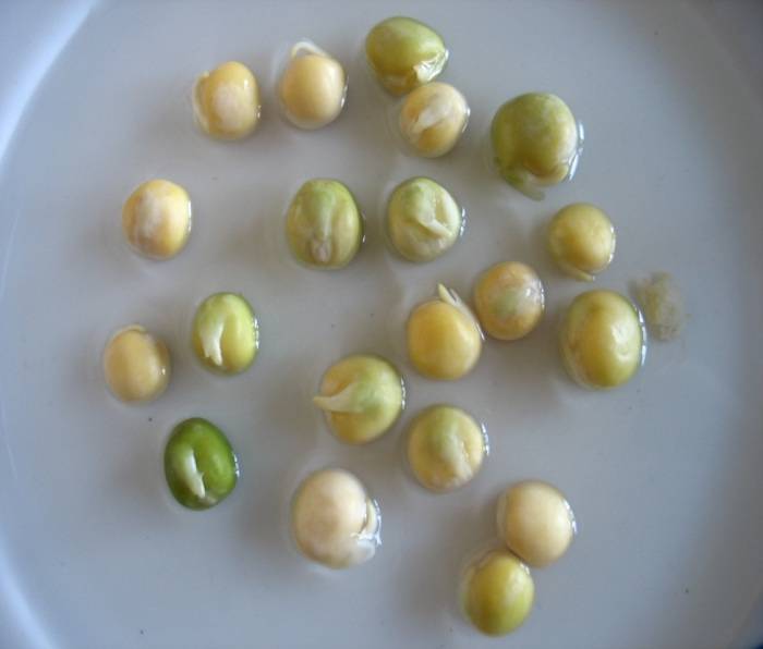 Only whole seeds are suitable for seed. Before planting in the ground, they must be germinated. You must first prepare a container in which the peas will germinate. This can be, for example, a plate with a cotton cloth soaked in moisture.