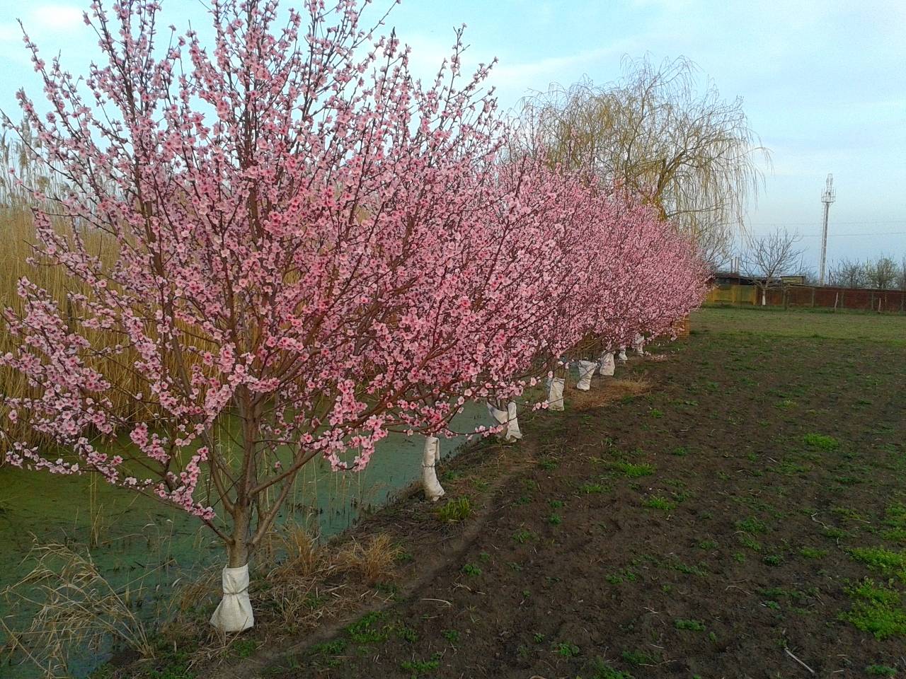 Planting holes for seedlings are prepared in 4-6 months, keeping a distance of 3-5 m, depending on the variety of fig peach. In cold regions, the ranks are formed "according to the principle of a fruit link." The thickened scheme is called "meadow garden". The row spacing is 2 m, the intervals in the row are 0.5 m. Individual fig peach trees form 10-15 fruits each.