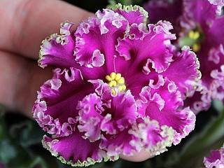 The herbaceous plant reaches 60 cm in height, its leaves are dark green, elongated, slightly twisted. Flowers are represented by inflorescences of a purple hue.