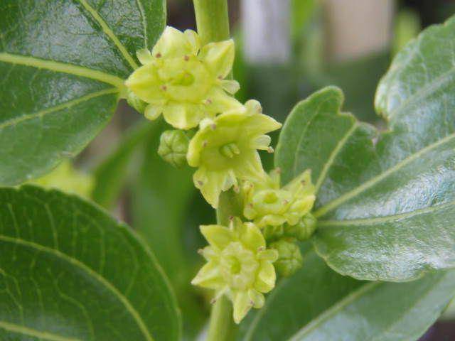 The flowers are fragrant yellow, sometimes have a greenish tint, they are collected in the axils of the leaves.