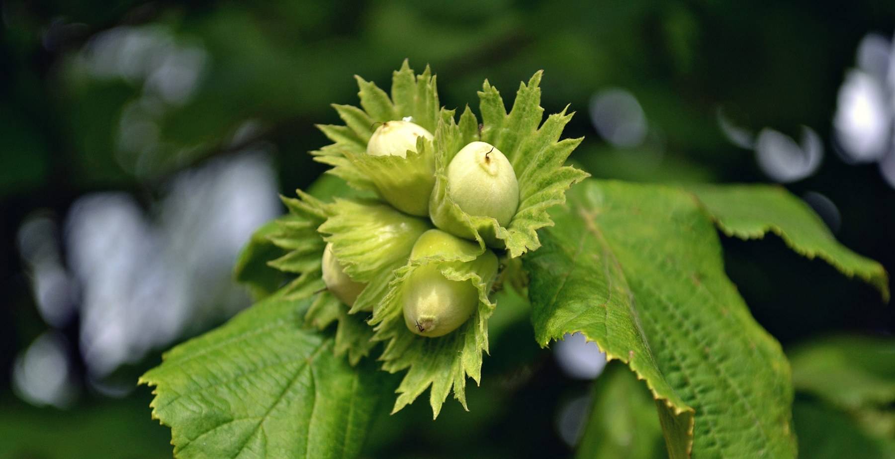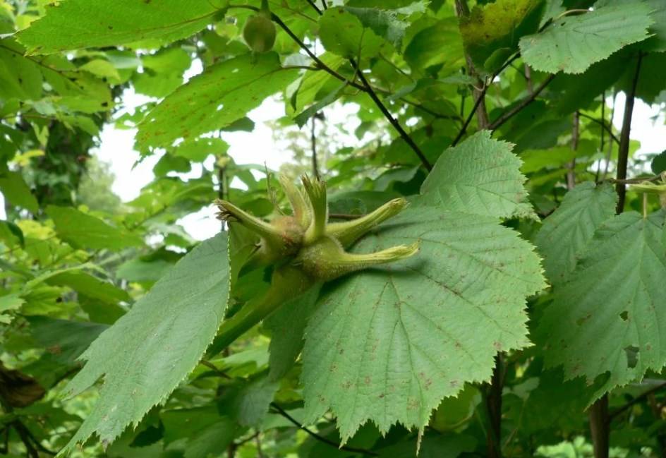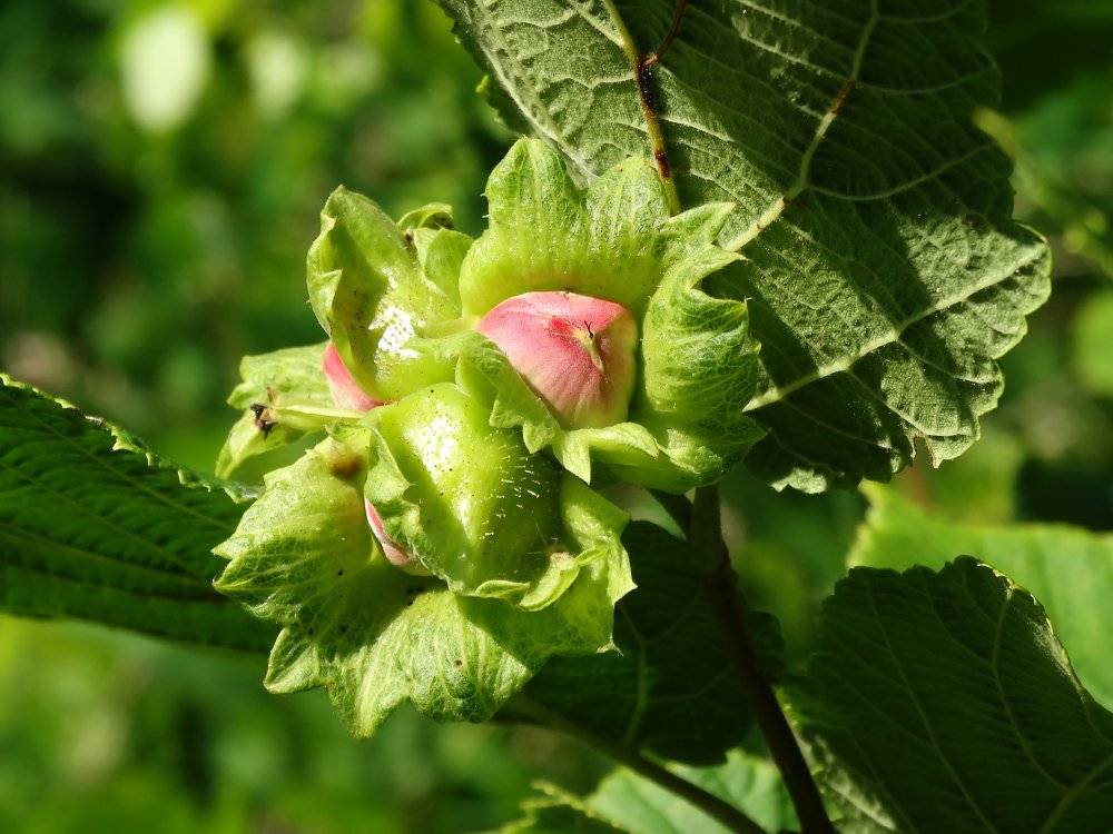 During flowering, male catkins and female flowers are formed on the bushes. For pollination, it is recommended to plant at least three plants close to each other. The hazelnut fruit is an inshell nut with green bracts, which are grouped in 3-5 pieces.