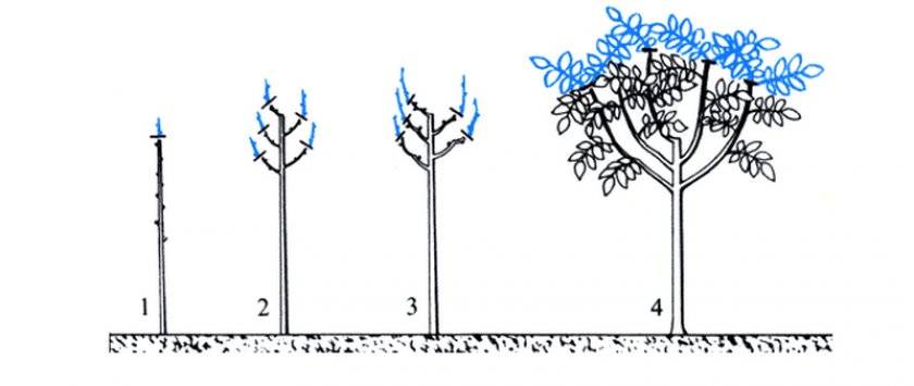 Depending on the varietal affiliation, the crown can be formed like a shrub or tree.