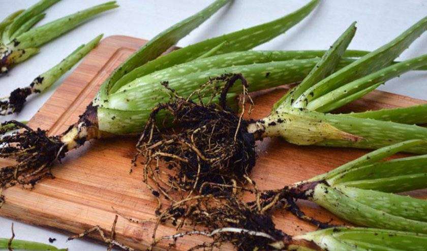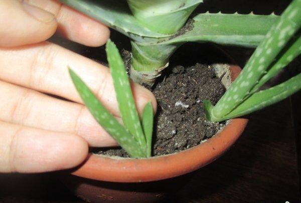 - If the roots of aloe are preserved, then it can be propagated by leaves with roots. It is recommended to immediately plant them in pots with prepared soil.