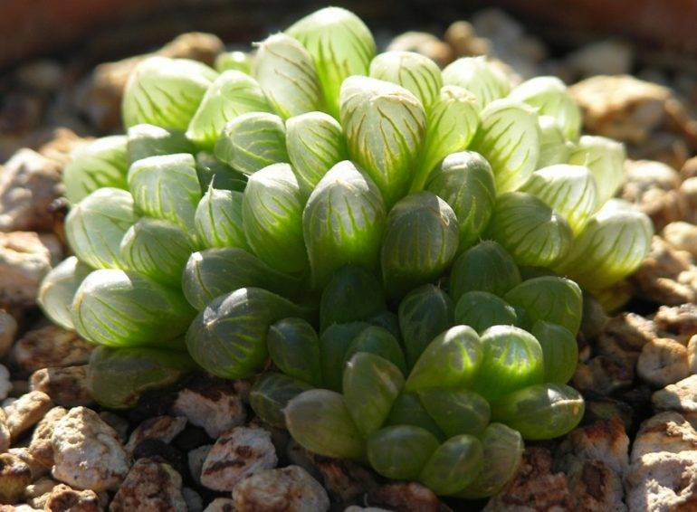 A succulent from the extensive genus Haworthia with graceful transverse stripes-ridges on the leaves - one of the most common in indoor culture. A beautiful plant is absolutely undemanding to care, easily multiplies and will decorate every home.