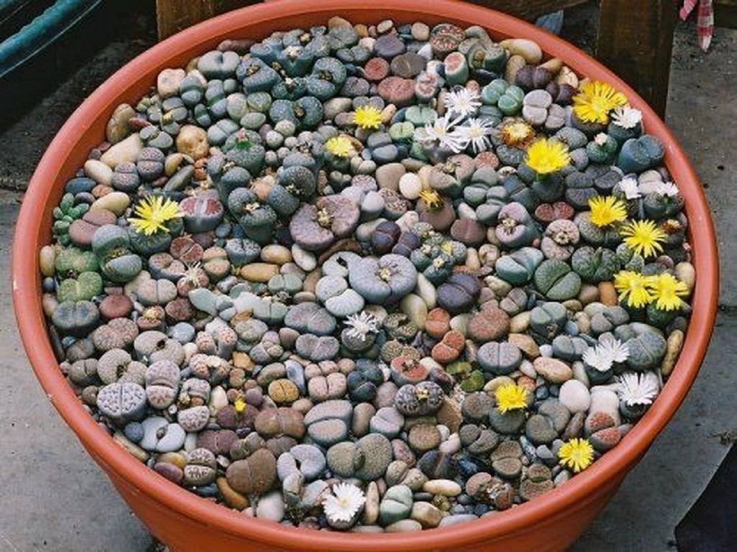 Living stones have a well-developed root system. That is why, when choosing a container for planting, it is worth giving preference to containers with a large volume. Live stones should be planted in groups, as plants can die alone. Even if the succulent survives, flowering will not occur.