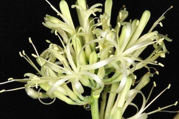 Sansevieria blooms regularly, although the flowers are not distinguished by their beauty. They open in the evenings and close in the morning. All night long there is a spicy aroma in the apartment.