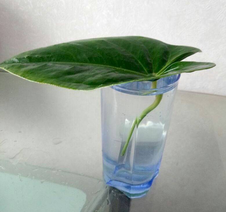 Since growing Anthurium from a leaf is quite troublesome, you need to help the bushes to take root by introducing special growth stimulants.
