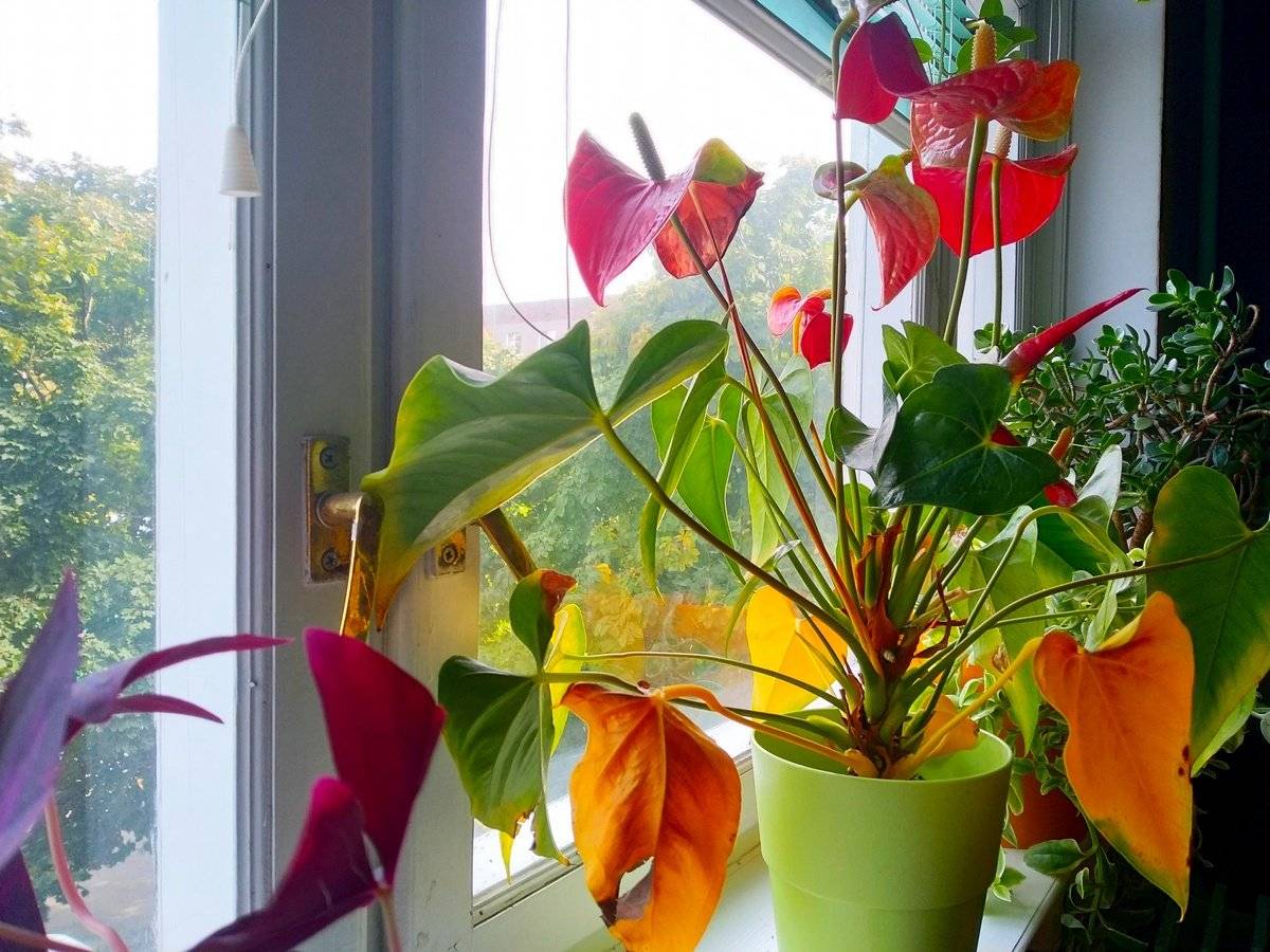 Just like other living organisms, anthurium can experience stress. It can be provoked by a move, a transplant. With quality home care, the flower quickly returns to its normal state and grows healthy.