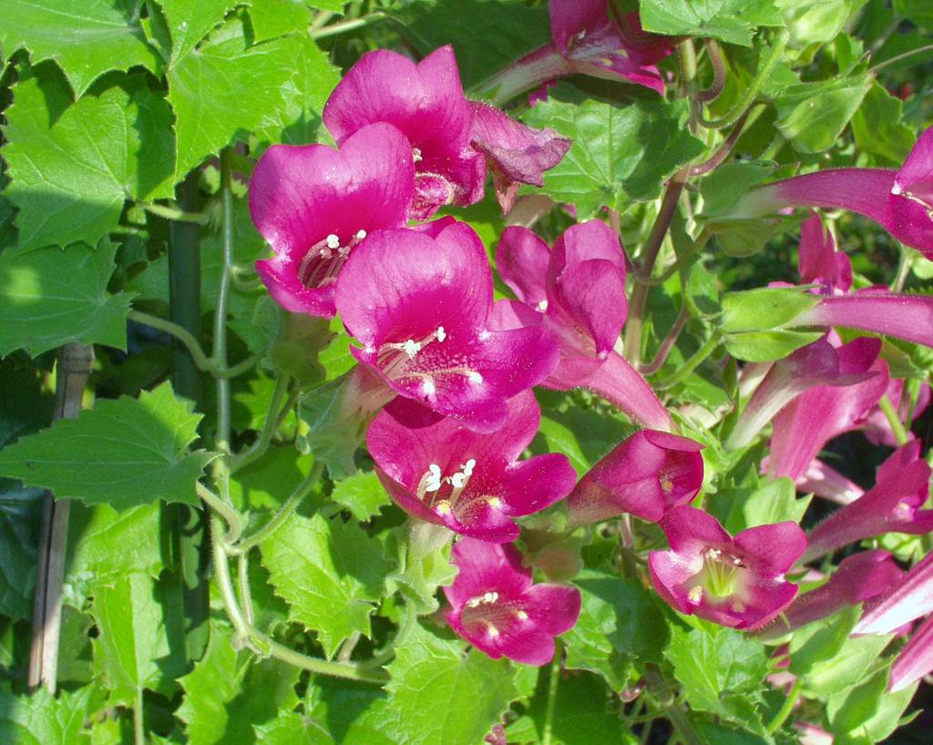 The blushing azarina, despite its impressive length (also more than 3 m), is not able to climb more than 5 m up the supports. Inflorescences are light pink with a white speckled pharynx. The leaves are pubescent to the stem. He loves warmth, so it fades in August.