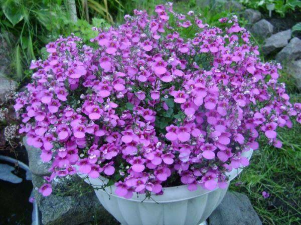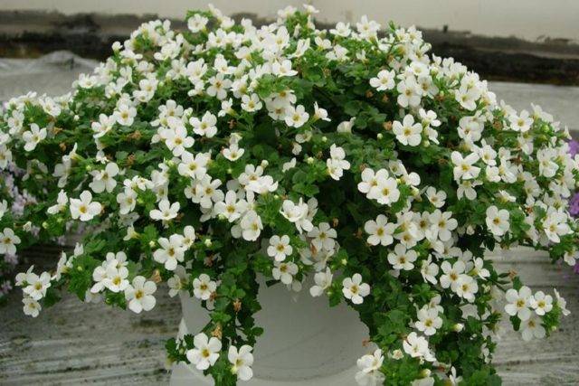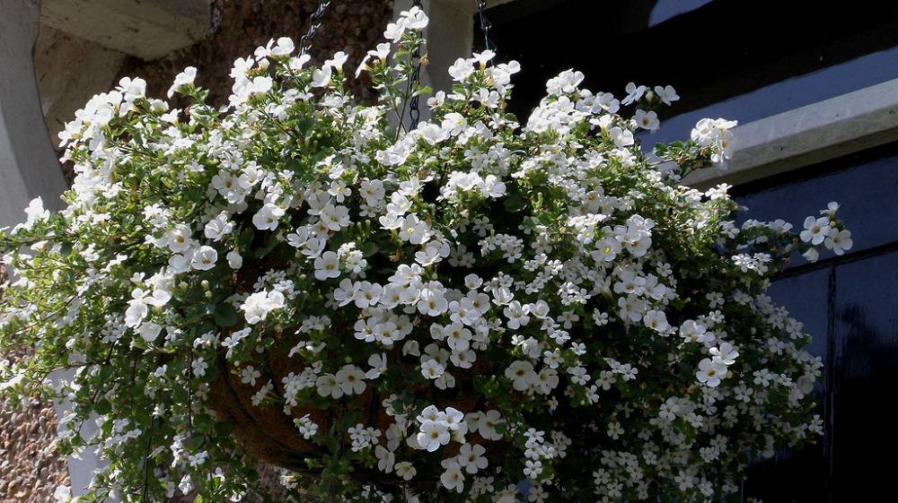 There is also ampelous bacopa, the cultivation of which has certain characteristics. This plant is intended for planting in hanging baskets or pots. It has long shoots that hang down beautifully or spread along the ground.
